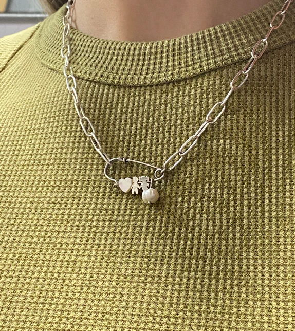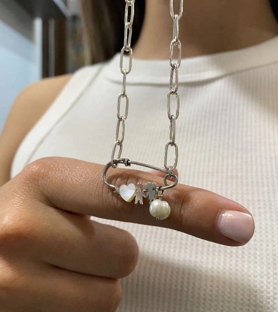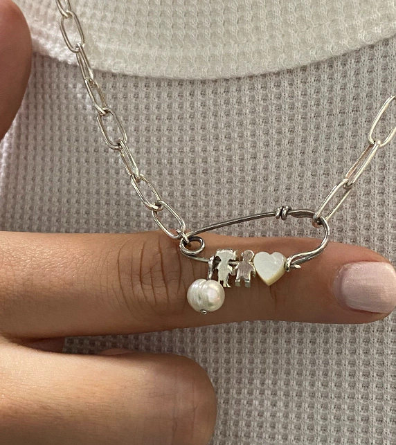 El valor es por cadena + con un gancho que trae consigo un corazón de perla pasante + un niño/a + una perla colgante. Puede agregar mas niños seleccionando debajo la opcion correspondiente