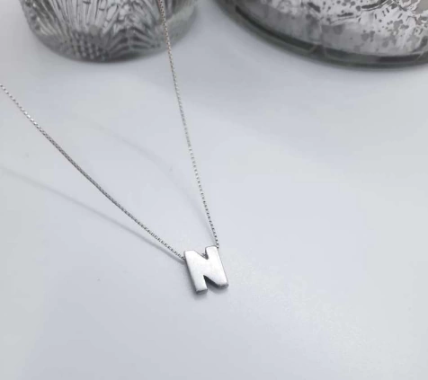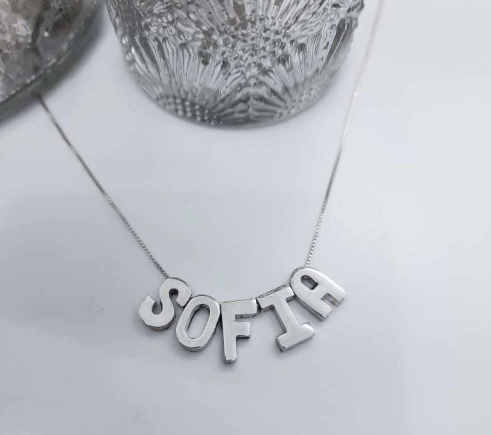 - Cadena + iniciales pasantes (macizas), realizado en plata 925 a mano por nuestros propios orfebres.