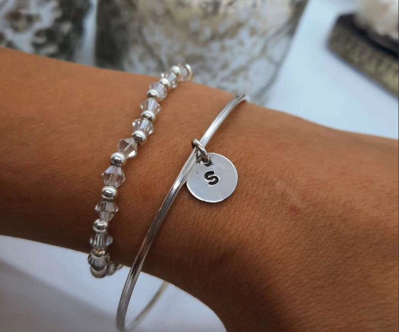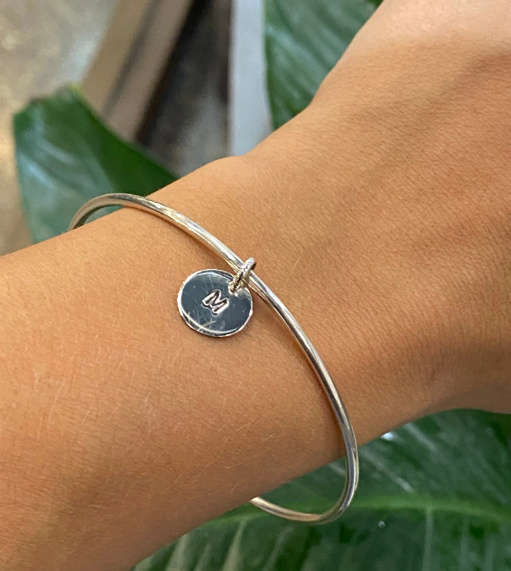 - Pulsera esclava con 1 chapita colgante (1.5cm) grabada, realizada en plata 925 a mano por nuestros propios orfebres.