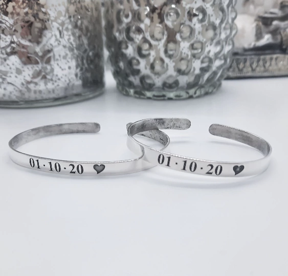- Pulsera esclava con fechas grabada a láser, realizada en plata 925 a mano por nuestros propios orfebres.