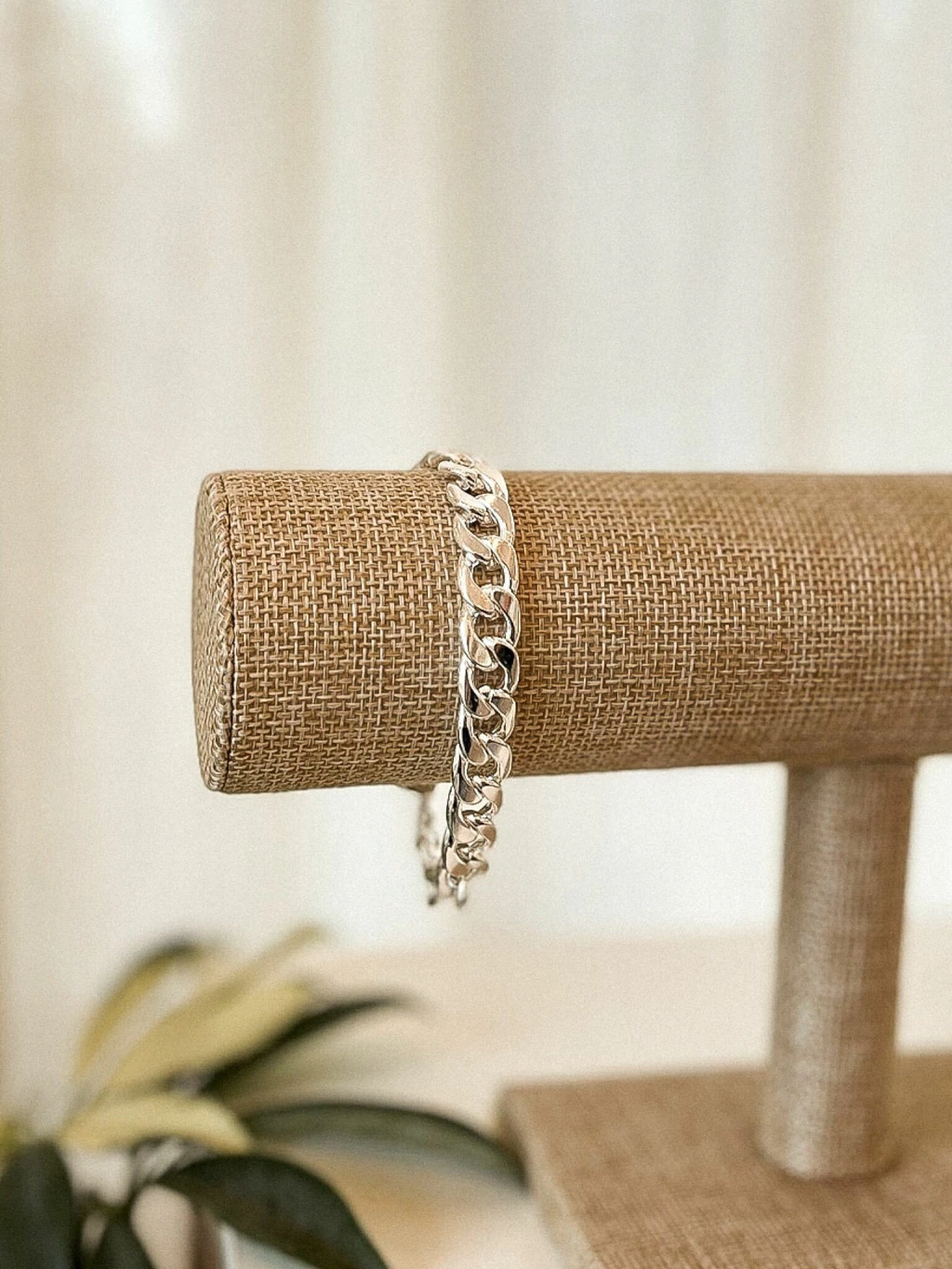 Pulsera Cubana de Acero Blanco – Estilo Clásico y Versátil. Elaborada en acero blanco inoxidable- ideal para uso diario por su resistencia y brillo duradero. Su diseño clásico y atemporal se adapta a cualquier estilo- ya sea casual o elegante. Unisex- cómoda y fácil de combinar. Perfecta para quienes buscan una joya moderna y minimalista. Material: Acero blanco de alta calidad