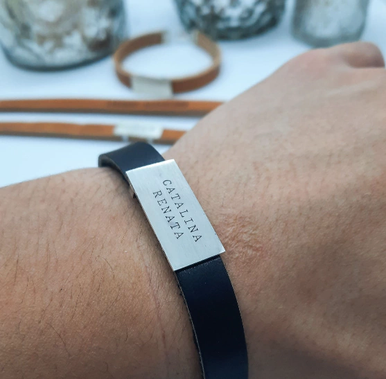 - Pulsera de chapita esmerilada en plata 925. Incluye grabado